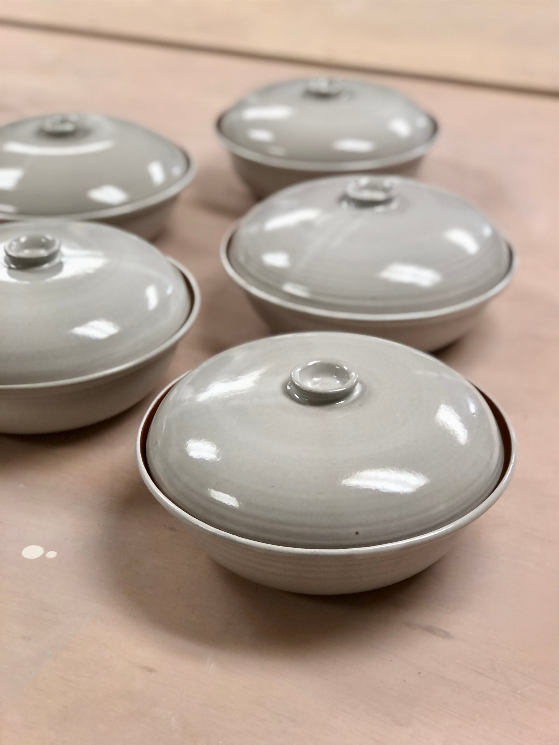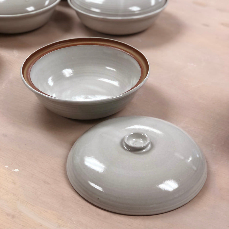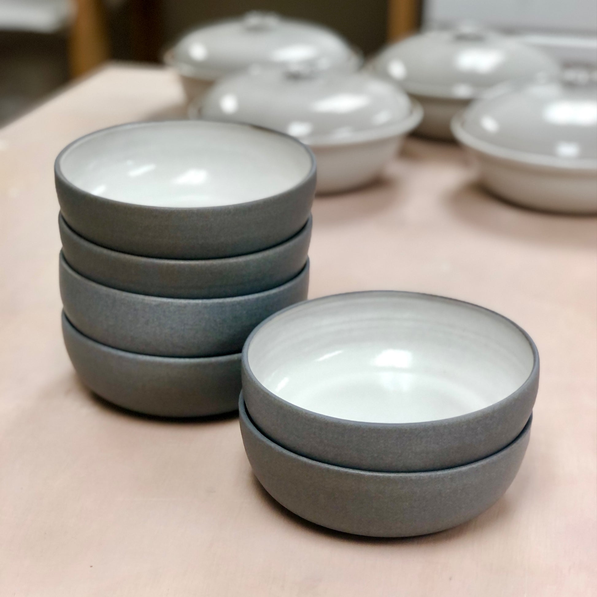 For their Austin and Aspen locations, I developed two sizes of lidded vessels designed specifically for chowder and mussels, alongside a collection of bowls used across the menu. The lidded forms are designed retain heat and to be opened by the server table side, supporting both presentation and function.