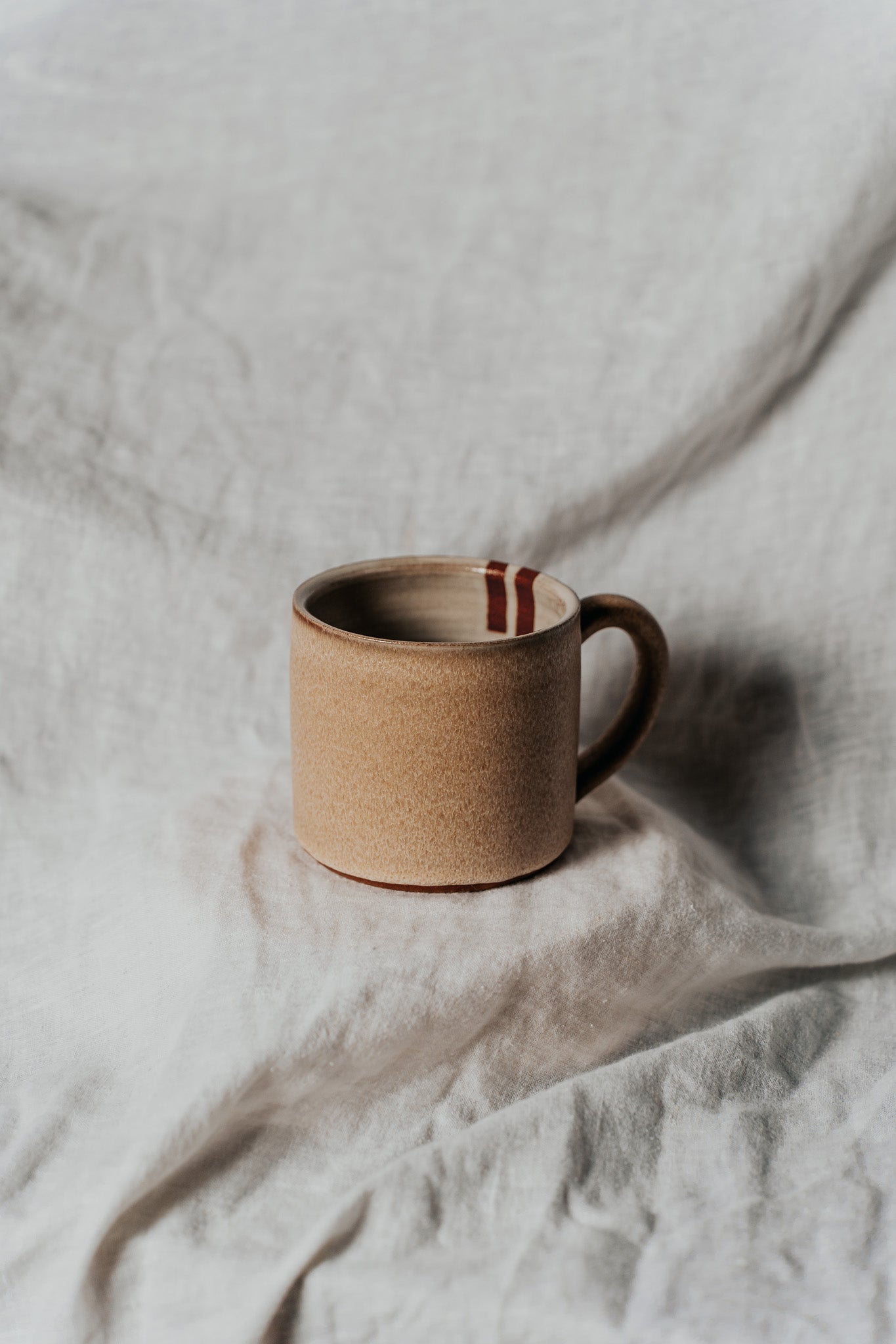 This handmade ceramic mug is crafted on the wheel and finished with a soothing light pink matte textured glaze that feels SO GOOD. The inside is glazed with a white liner glaze. Measuring 3.75" wide x 3.25" tall, it holds 17 oz. - it’s a great size for coffee, tea, or any daily favorite.