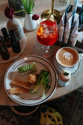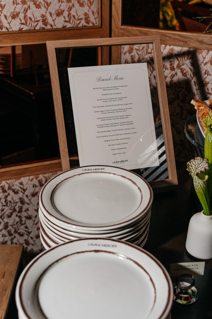 For a series of multi-city influencer events, I developed a collection of custom pieces inspired by the atmosphere of a Parisian café, while maintaining a handmade feel with details like the inset espresso colored lines.
