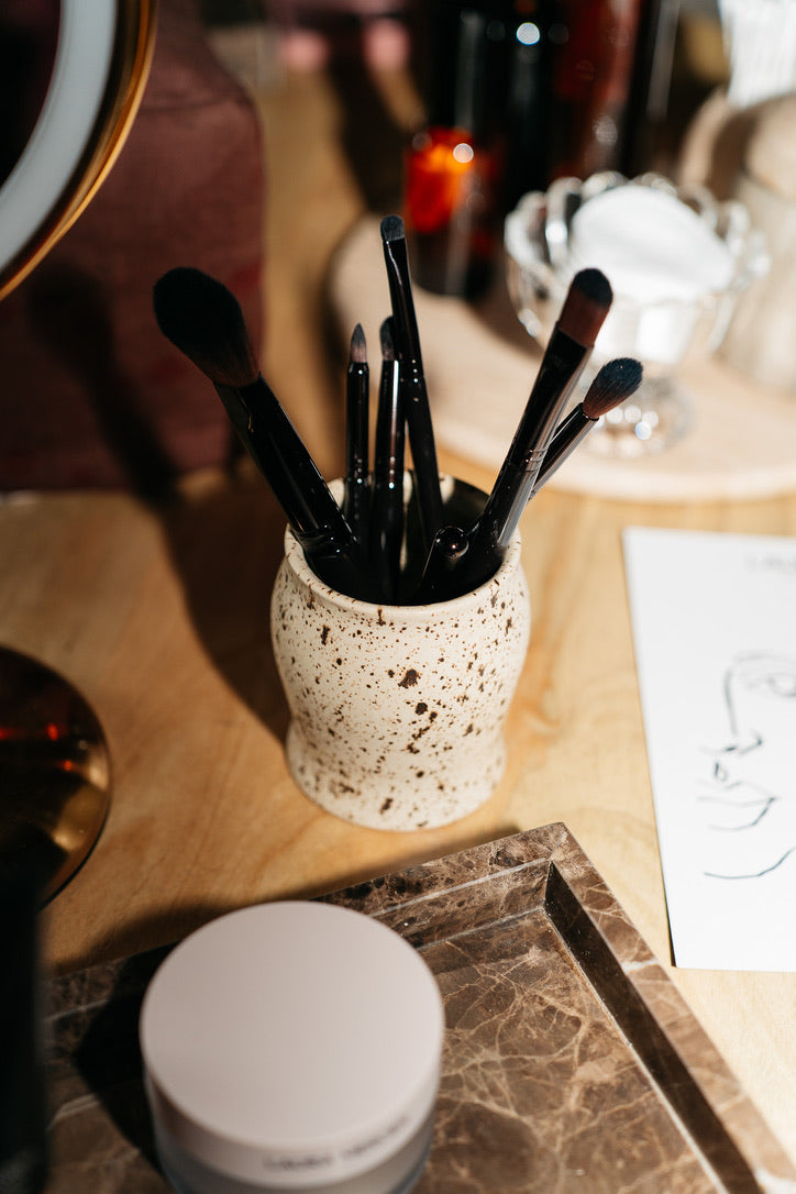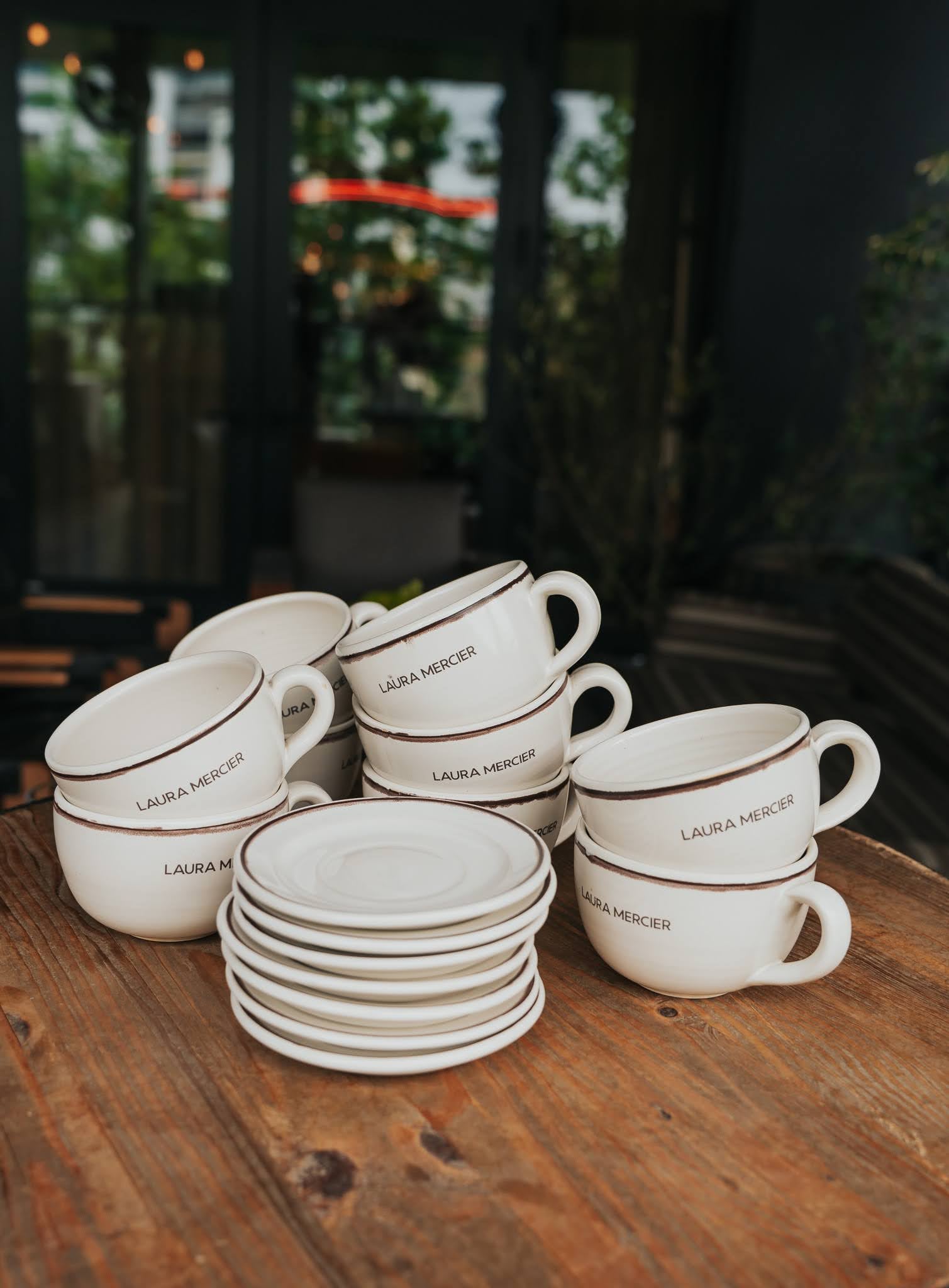 The collection included branded dinner plates, café mugs with matching saucers, and makeup brush holders - each designed to function within the event while reinforcing the brand’s visual language and brand colors.