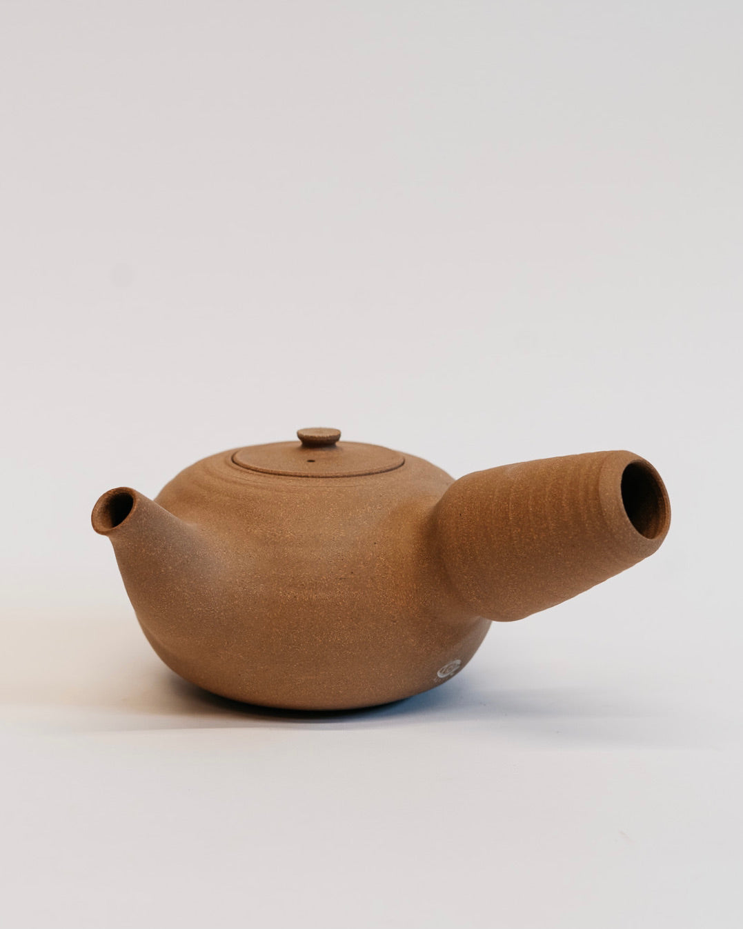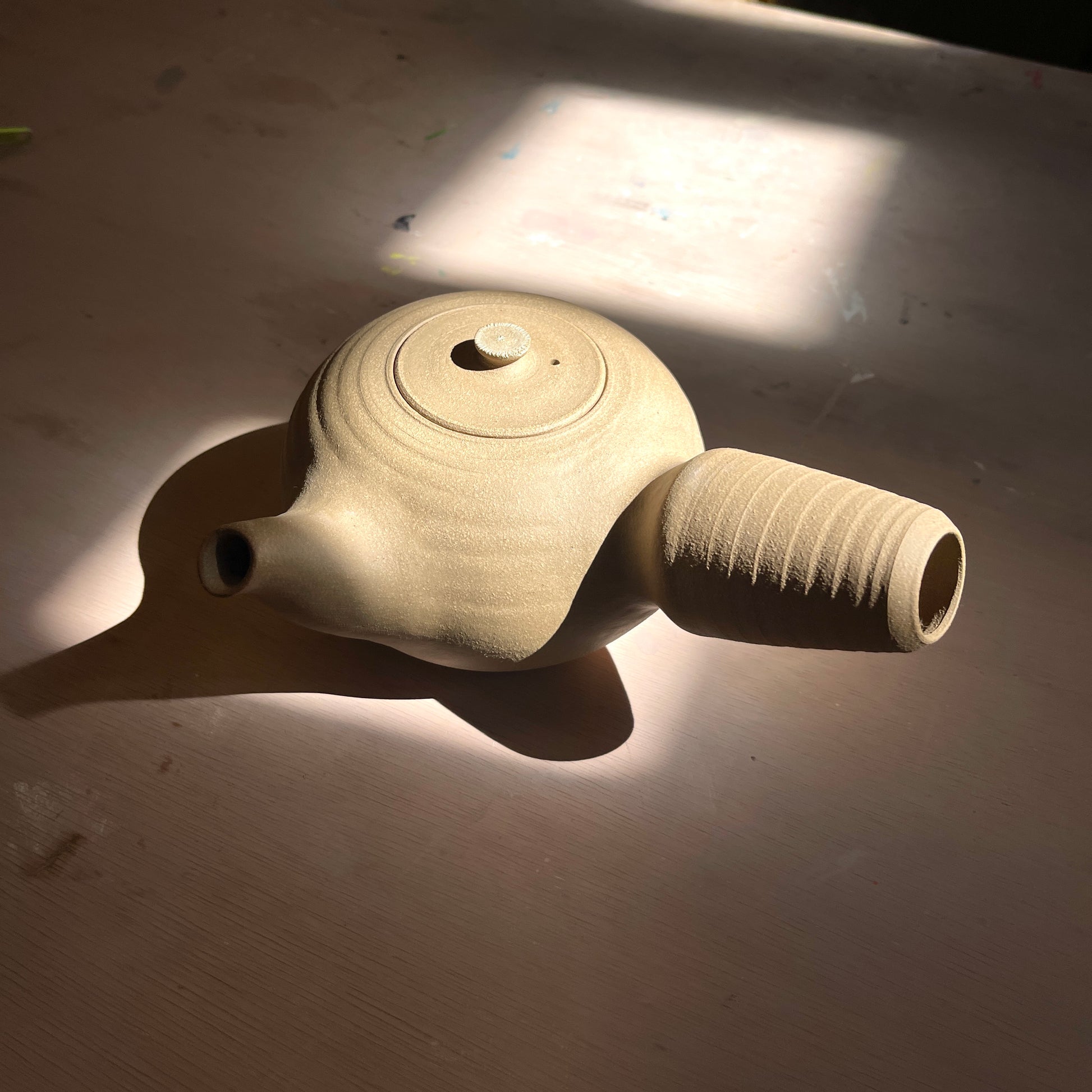 This unglazed side handle teapot is an early exploration of form, celebrating the natural beauty of raw clay. Larger than a standard side-handle teapot, it’s designed for both function and elegance, with a balanced weight and a handle that feels comfortable in your hand.