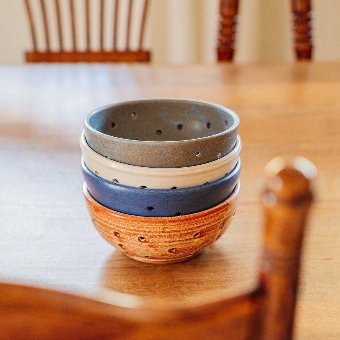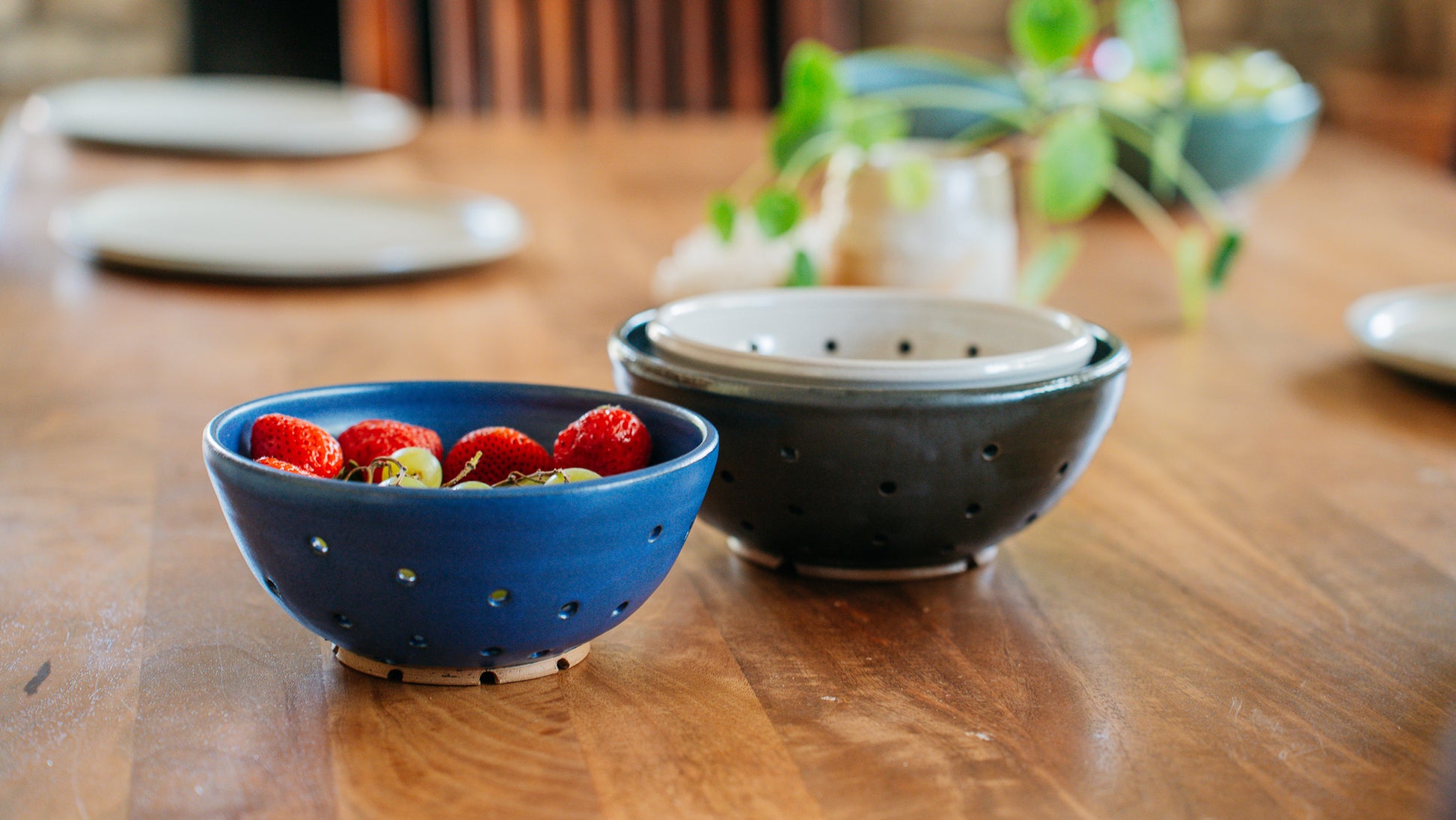 Handmade from Texas stoneware, each bowl is one of a kind, blending artisanal craftsmanship with everyday practicality. Customers say these bowls are in constant rotation in their homes, whether used for washing fruit or in the fridge or on the counter full of tomatoes.