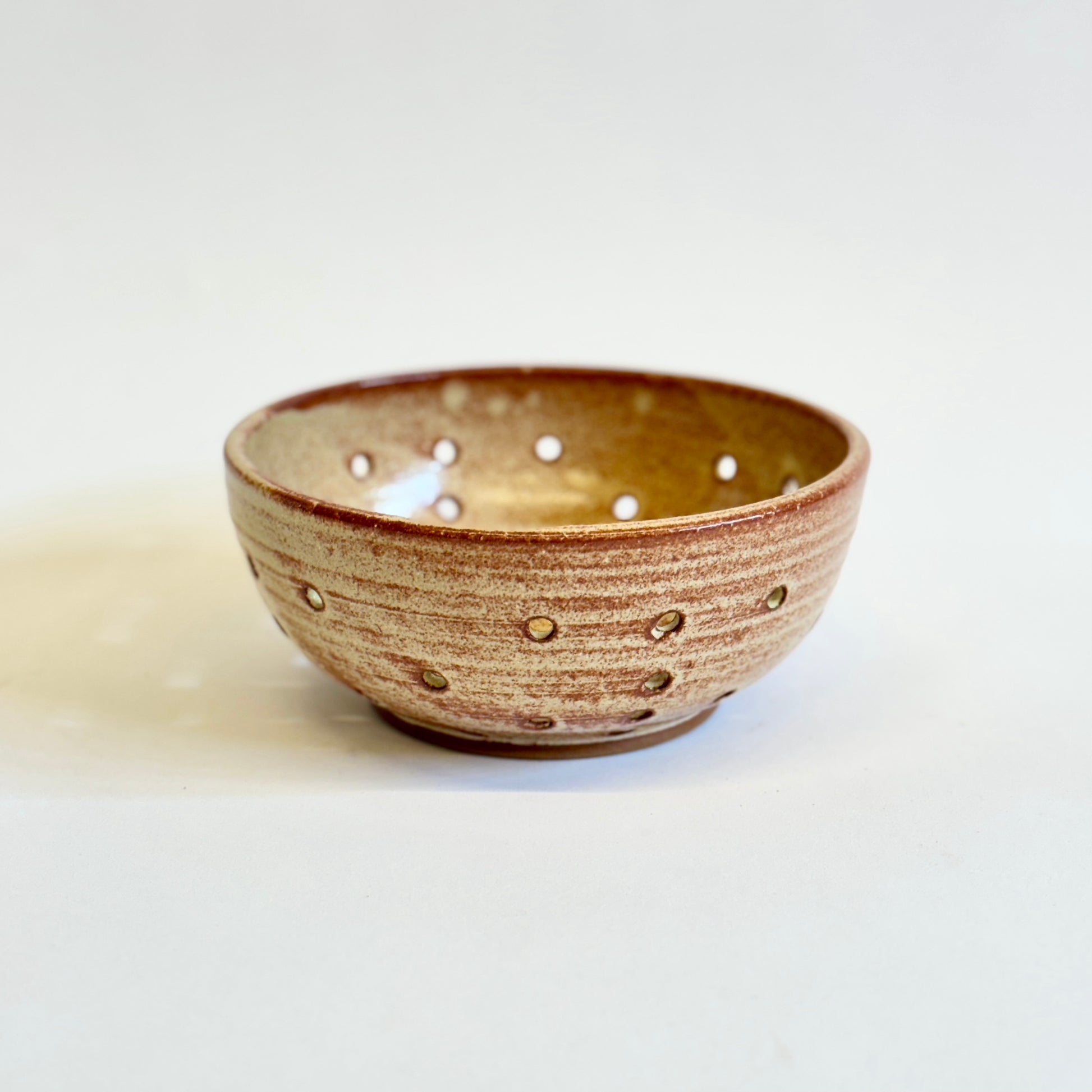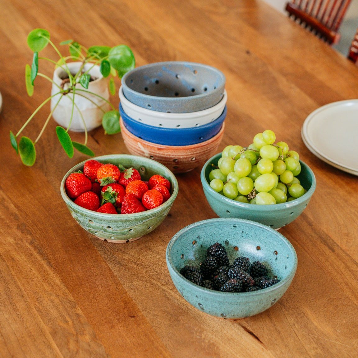 This small berry bowl is both functional and beautiful, designed to wash and display your favorite fresh fruits. At 6 inches wide and 3 inches tall, it’s the perfect size for small servings of berries or delicate fruits, while the small drainage holes allow for easy washing and quick drying.