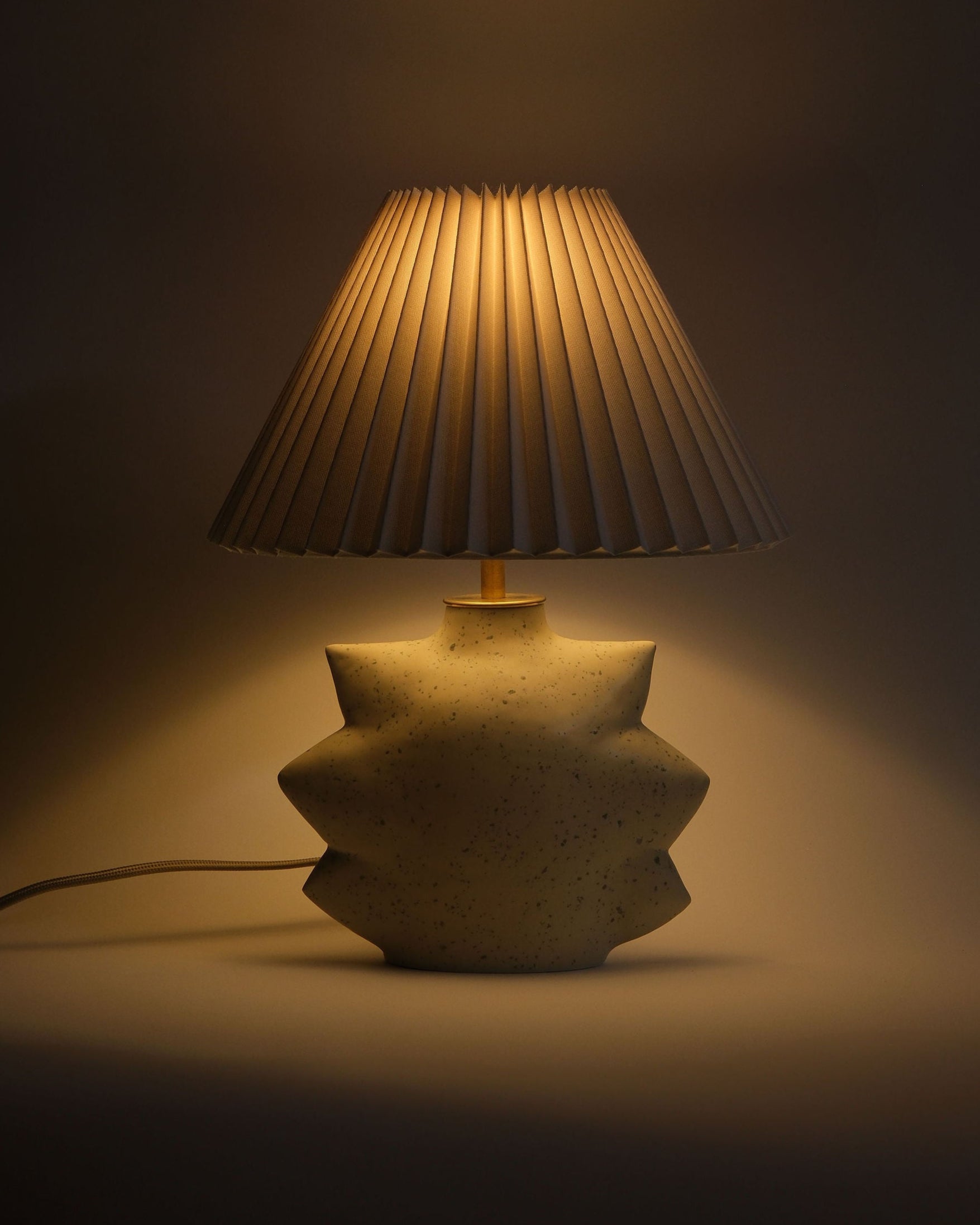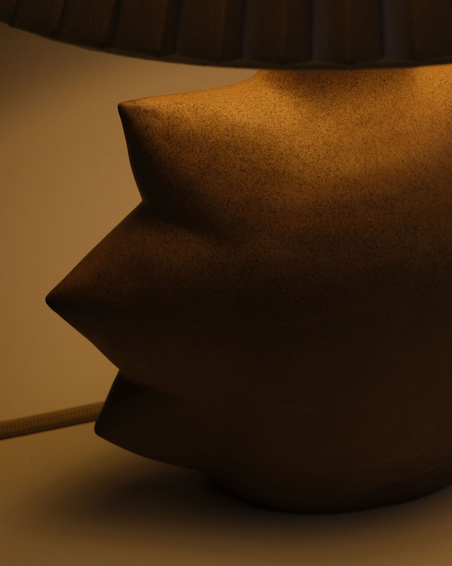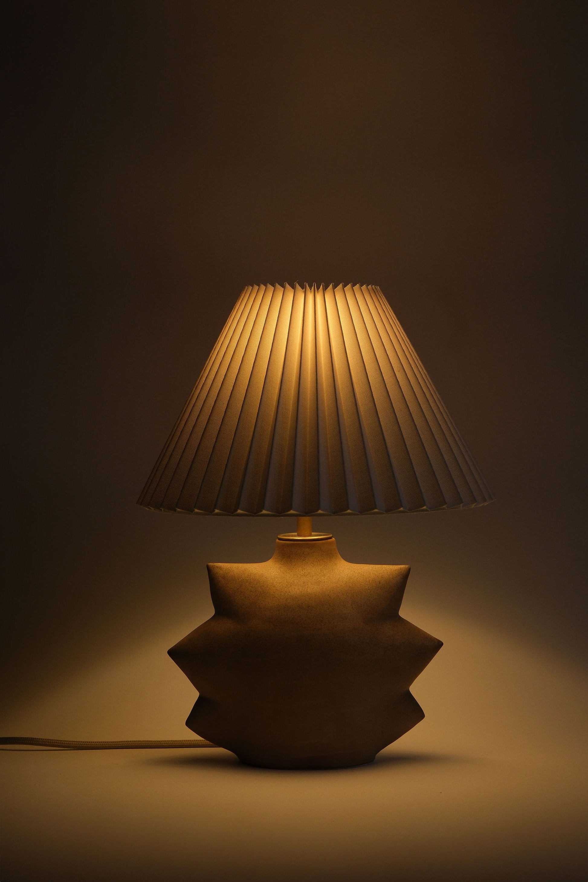 Sculptural and compact, the Star Lamp draws from celestial forms—its rhythmic points echoing the quiet energy of constellations and natural symmetry. Designed to bring warmth and presence to smaller spaces, each base is finished in your choice of glaze: Oat, a warm gritty beige; Lapis, a deep matte cobalt; Smoke, a soft charcoal grey; or Sea Salt, a cool, chalky white. The silhouette is grounded by solid brass hardware throughout, including a custom-made vase cap that adds weight and refinement. Keep in mind that each lamp will have subtle variations in the glaze as it is handmade. Lamp comes without a shade.