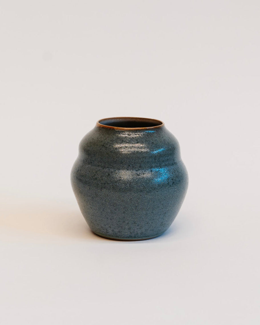 Measuring 4 inches tall and 4 inches wide, it’s just the right size for showcasing your favorite blooms. Finished in Midnight glaze, a glossy deep blue with subtle speckles of turquoise and periwinkle, the exterior is complemented by a glossy clear glaze on the interior.